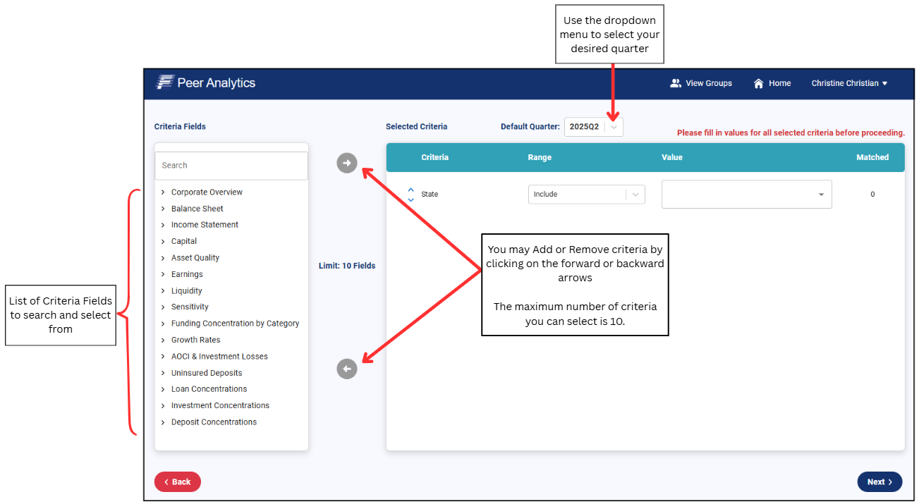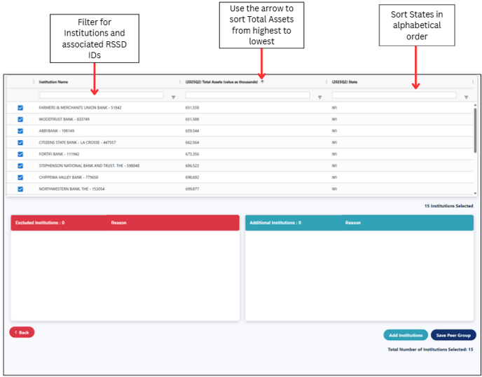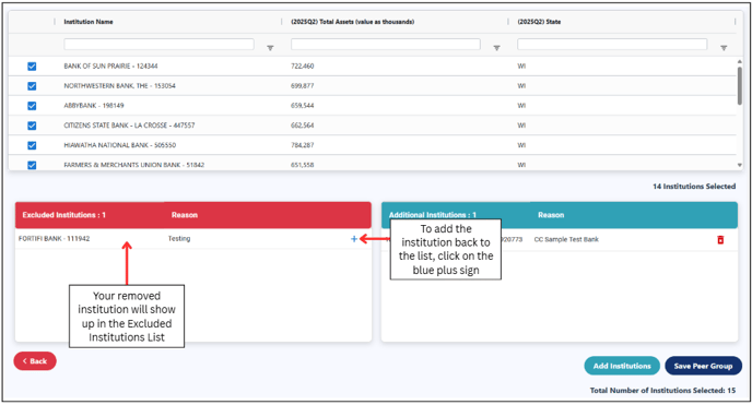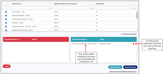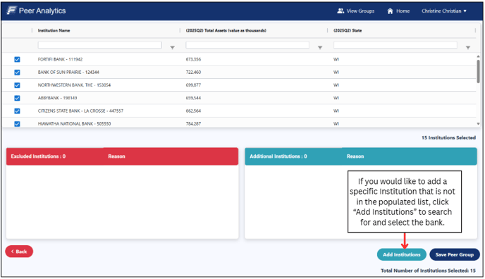 - Please note you may only add institutions into your Peer Group if your list has less than 20 banks.