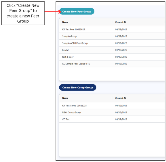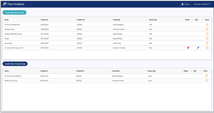 When you click 'Edit Peer Groups,' you'll be taken to the Peer Analytics page. Here, you can choose to create either a Peer Group or a Comparable Group.