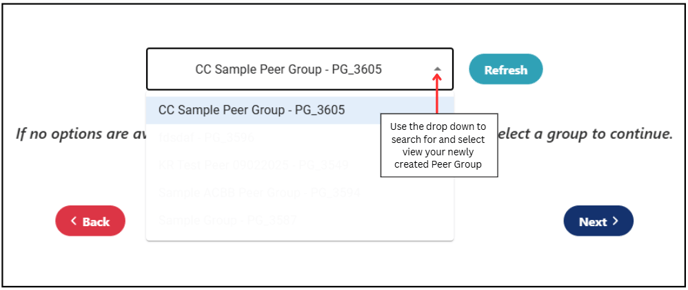 After clicking "Refresh", use the drop down to view your newly created Peer Group: