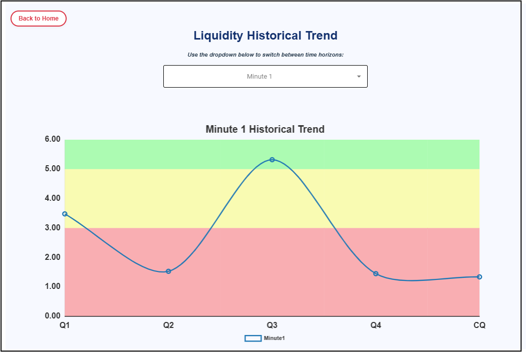 This step offers a narrative analysis of the institution's liquidity positions over the time series horizons.