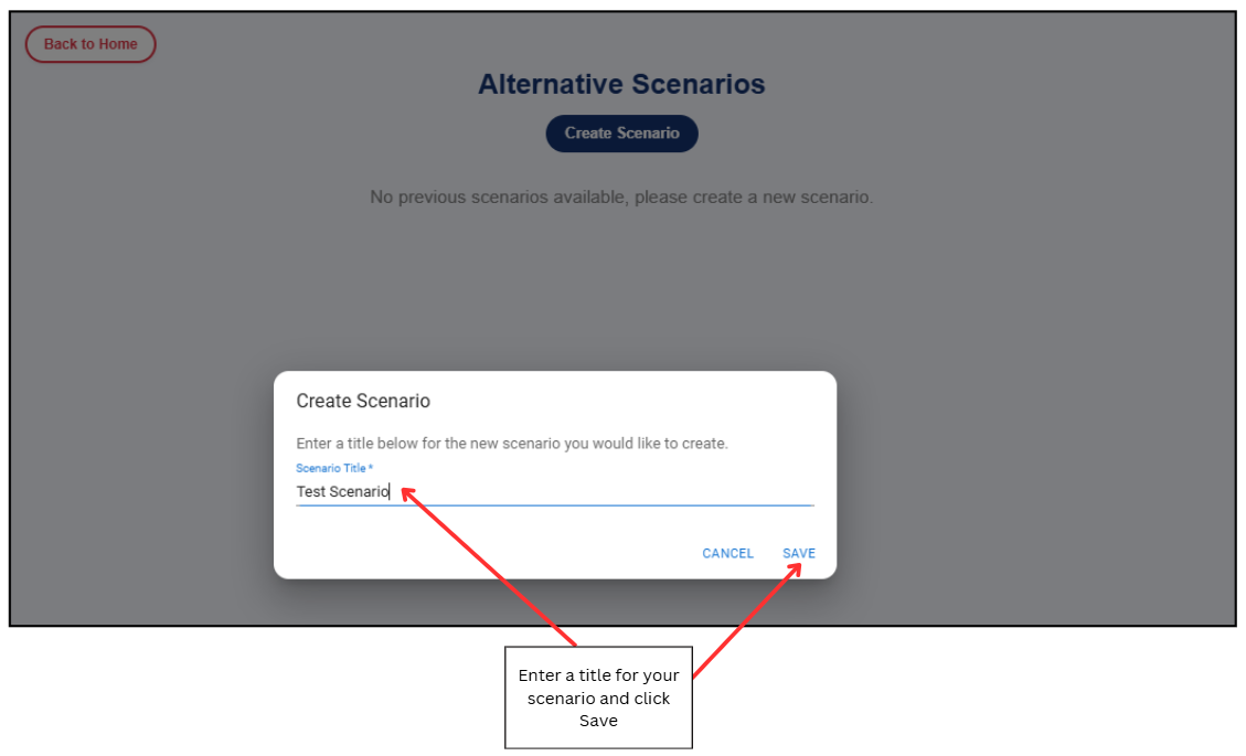 Once you click "Create Scenario", enter a title for the scenario you would like to create and click "Save."