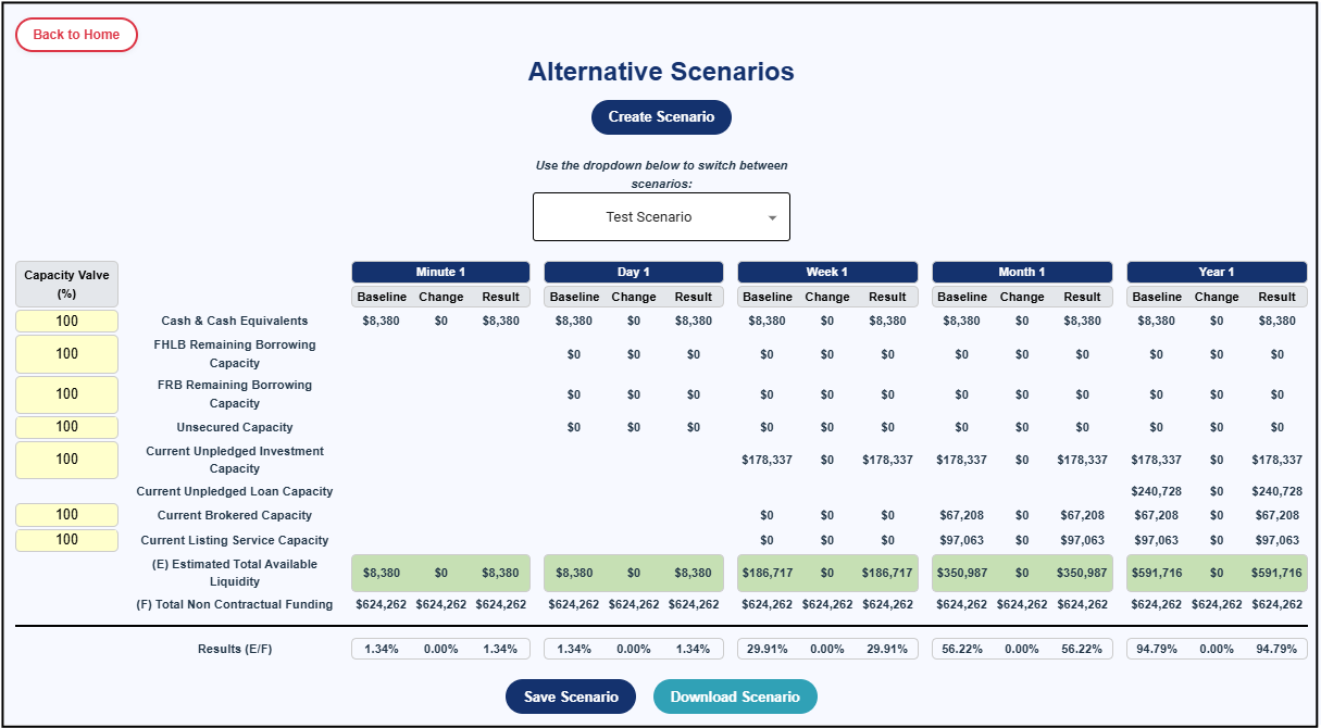 Once you create your Scenario, users can input Capacity Valve percentage for each Time Horizon. Save the Scenario once complete.