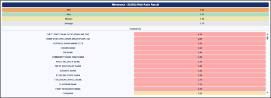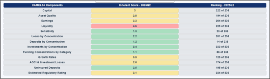 This step breaks down each CAMELS+ component and displays the results for each institution in the selected ranking group. Institutions and their results are sorted highest to lowest risk for each component.