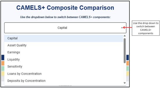 Use the drop down to switch your view between CAMELS+ ratios and concentrations: