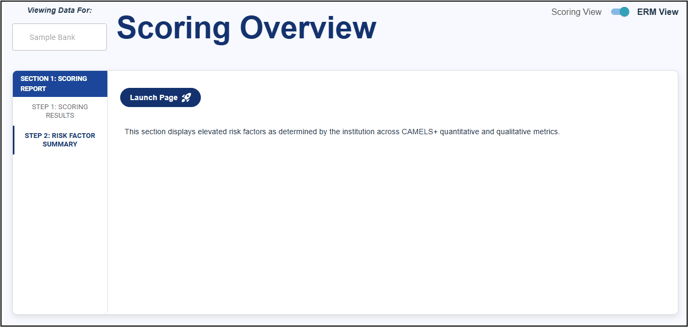 The Scoring Overview page will default to Step 1 of Section 1. Clicking "Launch Page" brings us to Scoring Results: