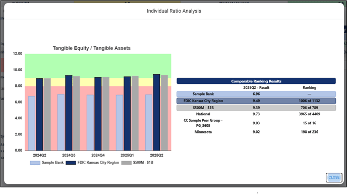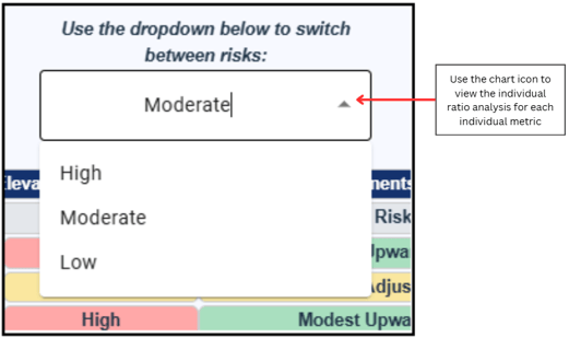 Use the chart icon to view the individual ratio analysis for each individual metric.