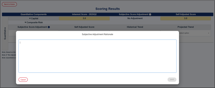 Upon entering your Subjective Score Adjustment, you will be required to insert the rationale behind your selection.