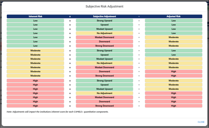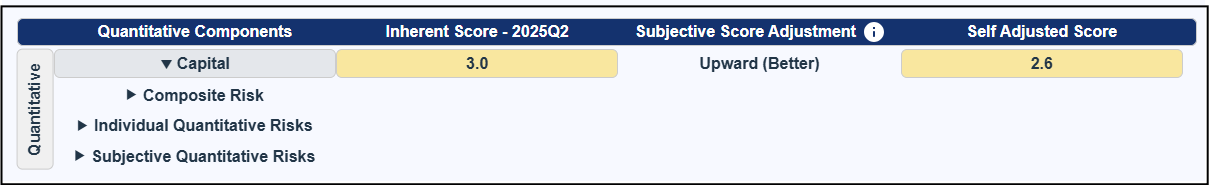 Use the chevron next to each CAMELS+ component to view & edit your composite, individual, & subjective risks.