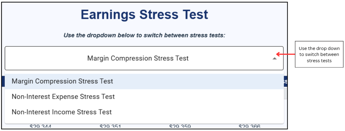 This step runs single variable stress tests related to the selected institution’s earnings.
