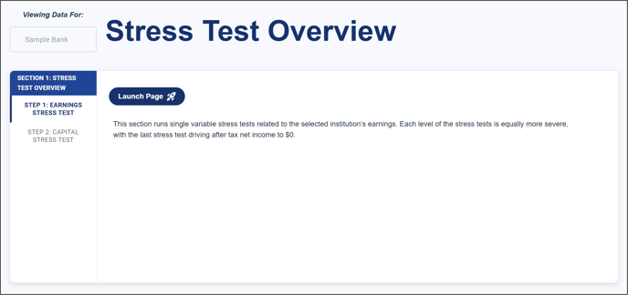 - The Stress Test Overview contains Earnings Stress Test and Capital Stress test details: