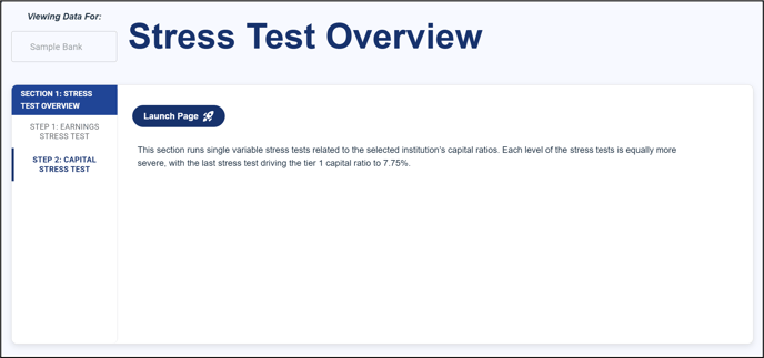 The Stress Test Overview page will default to Step 1 of Section 1. Clicking "Launch Page" brings us to the Comparative Performance details: